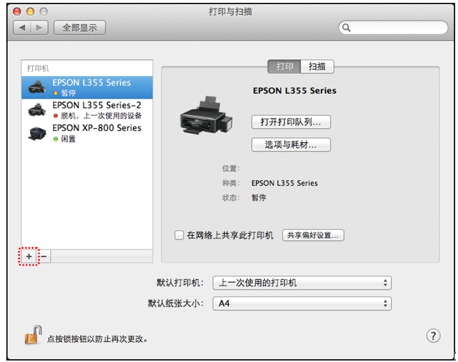 第四步:Mac OS X 將搜索連接到 Mac上的打印機,並自動連接互聯網檢查可用的打印機驅動程序。根據打印機功能的不同,同一台打印機連接到Mac OS X上可能顯示多個設備,如 XP-801,係統會搜索到 XP-800 Epson打印驅動、XP-800 AirPrint 打印驅動和XP-800傳真驅動。