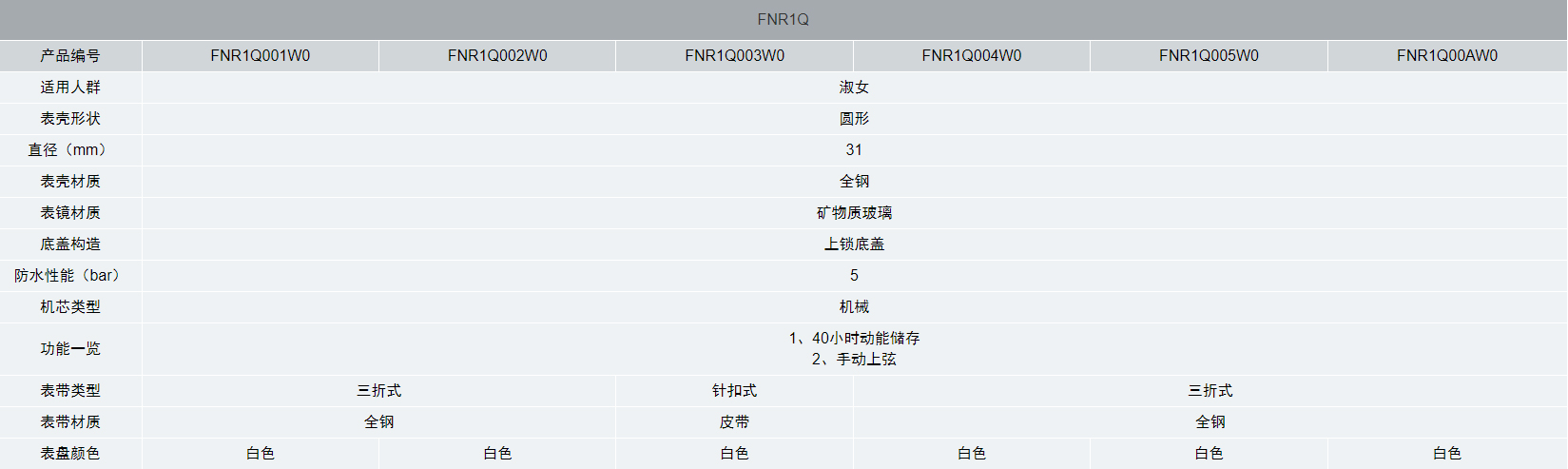 | 產品編號 | FNR1Q001W0 | FNR1Q002W0 | FNR1Q003W0 | FNR1Q004W0 | FNR1Q005W0 | FNR1Q00AW0 |