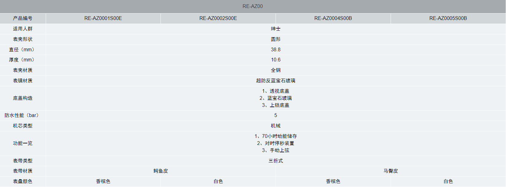 | 產品編號 | RE-AZ0001S00E | RE-AZ0002S00E | RE-AZ0004S00B | RE-AZ0005S00B |