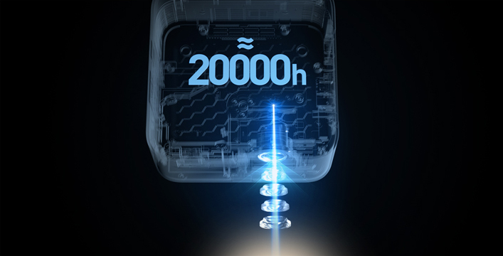 *3 光源使用標準壽命為20,000小時,激光光源實際使用壽命受使用模式、環境條件、用戶使用習慣等因素影響有所差別;激光光源亮度將隨使用時間的增加而逐漸降低,在低亮度模式下使用投影機,激光光源使用壽命將得到有效延長。