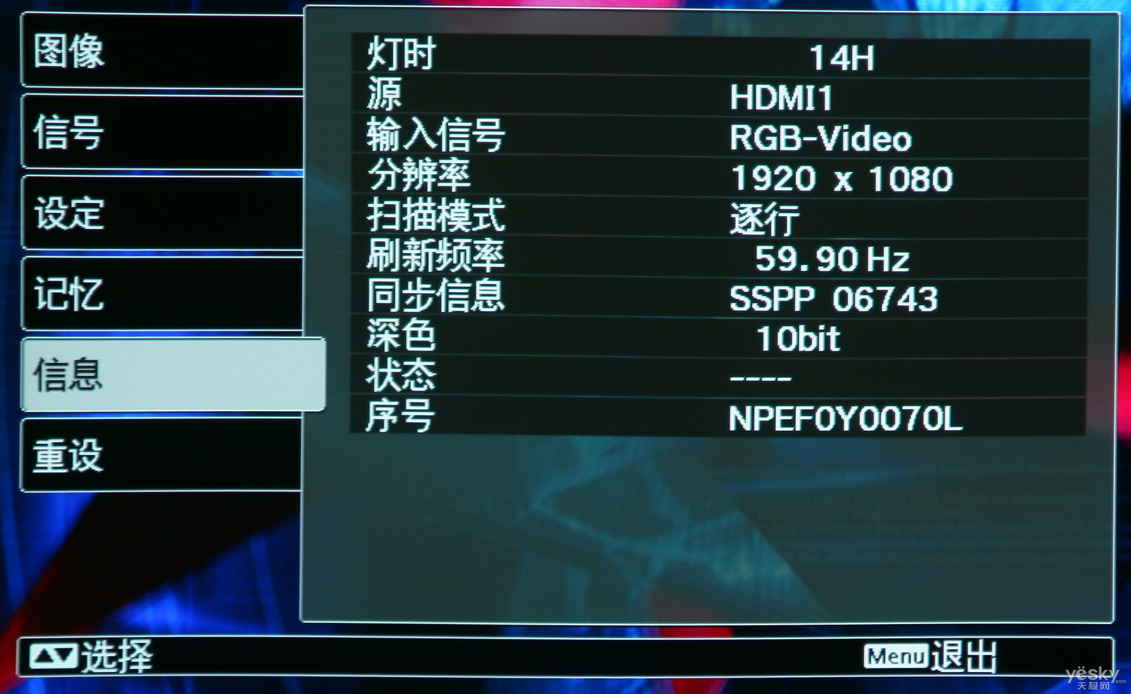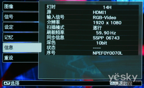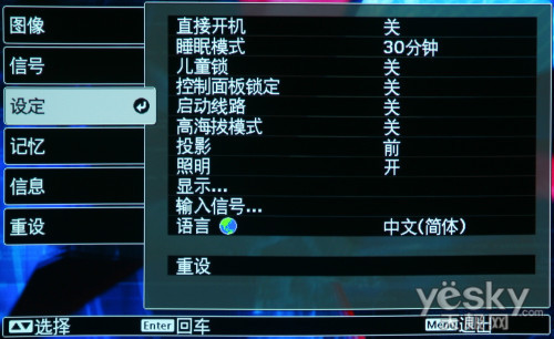 愛普生EH-TW3300C的菜單設計非常直觀,而六大項分類讓菜單也顯得極為專業,縱向切換的方式也,符合大部分用戶的使用習慣。