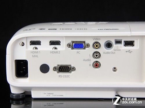 愛普生CH-TW5200接口配置豐富實用,擁有雙HDMI(HDMI 1兼容MHL)、VGA、Video、USB、RS-232等接口,能夠滿足用戶在家中連接藍光播放機、遊戲機、智能移動終端等設備的使用需求。