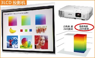 3LCD 投影技術輸出色彩更加均衡的影像白色亮度=色彩亮度 |