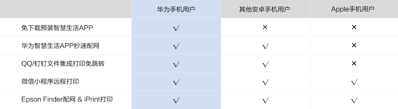 *1、愛普生L3150係列(L3151/L3153/L3156/L3158)於2021年5月14日得到HUAWEI HiLink認證,是首款支持HUAWEI HiLink的彩色噴墨打印機。隨機帶有《華為智慧生活APP配置打印機使用說明》設備的可以直接使用HiLink。其他L3150係列設備可通過固件升級實現,具體升級方式,點擊查看文字版說明,點擊查看視頻版說明。