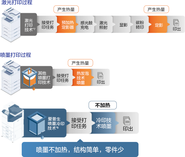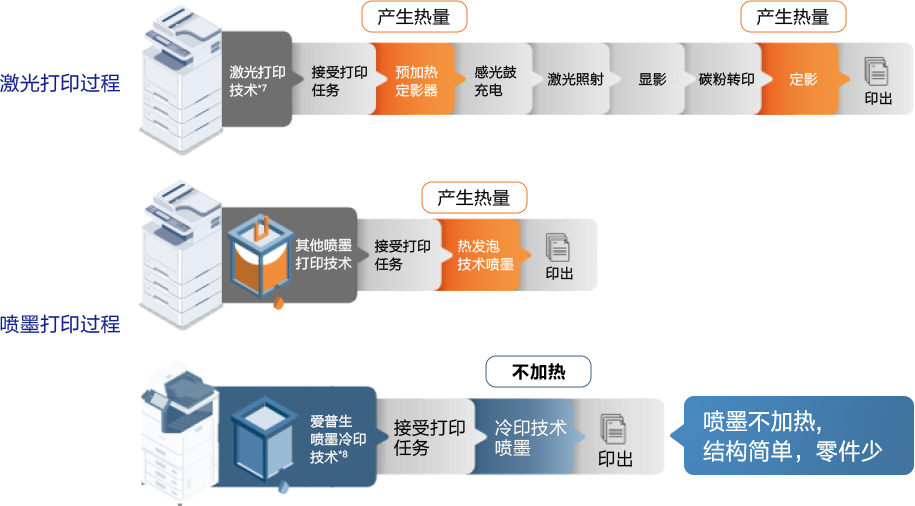 在愛普生,我們正著力改變我們的用電方式。愛普生冷印技術打印機,在噴墨過程中無需加熱,不僅降低了打印能耗,還有利於提升打印機性能。